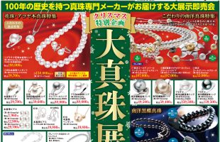 佐賀, 展示会 伊万里真珠本店 クリスマス特別企画 大真珠展 12月14日(木)~ 100年以上の歴史を誇る伊万里真珠本社セールのご案内 切れたネックレスの修理など、アクセサリー全般の修理もお任せください。 修理やリフォーム(リメイク)、作り変えなどのご相談は無料で承っておりますので、 お気軽にご相談ください。