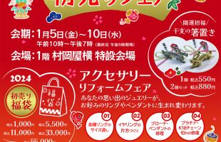 佐賀, 展示会 伊万里真珠本店 新春初売りフェア 1月5日(金)~ 100年以上の歴史を誇る伊万里真珠本社セールのご案内 切れたネックレスの修理など、アクセサリー全般の修理もお任せください。 修理やリフォーム(リメイク)、作り変えなどのご相談は無料で承っておりますので、 お気軽にご相談ください。