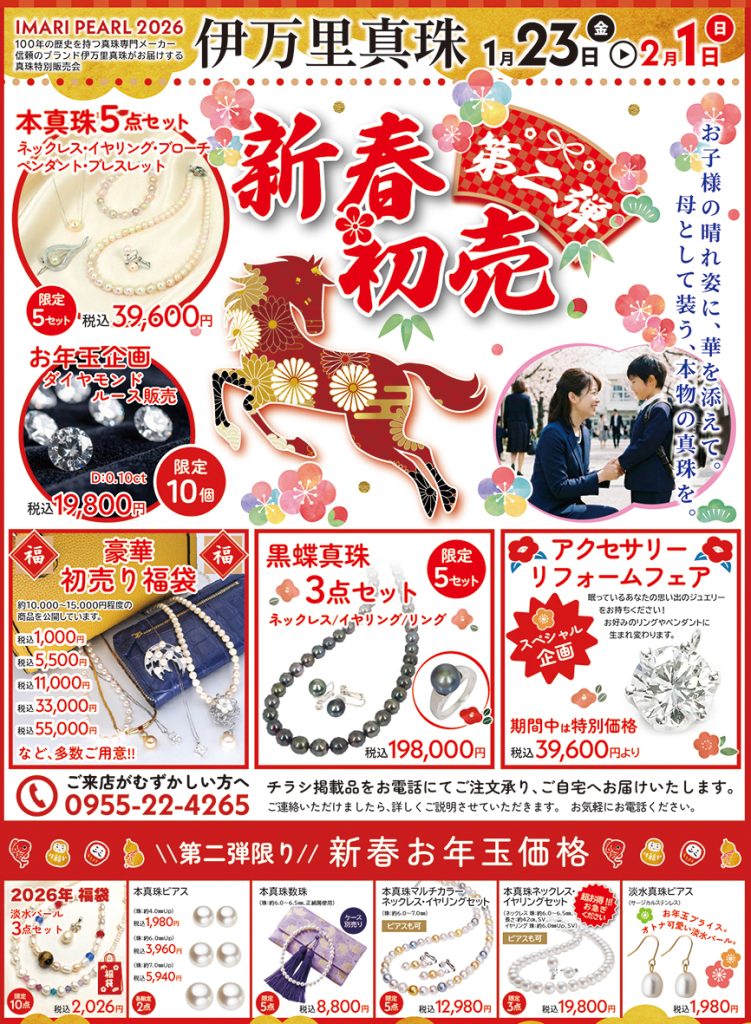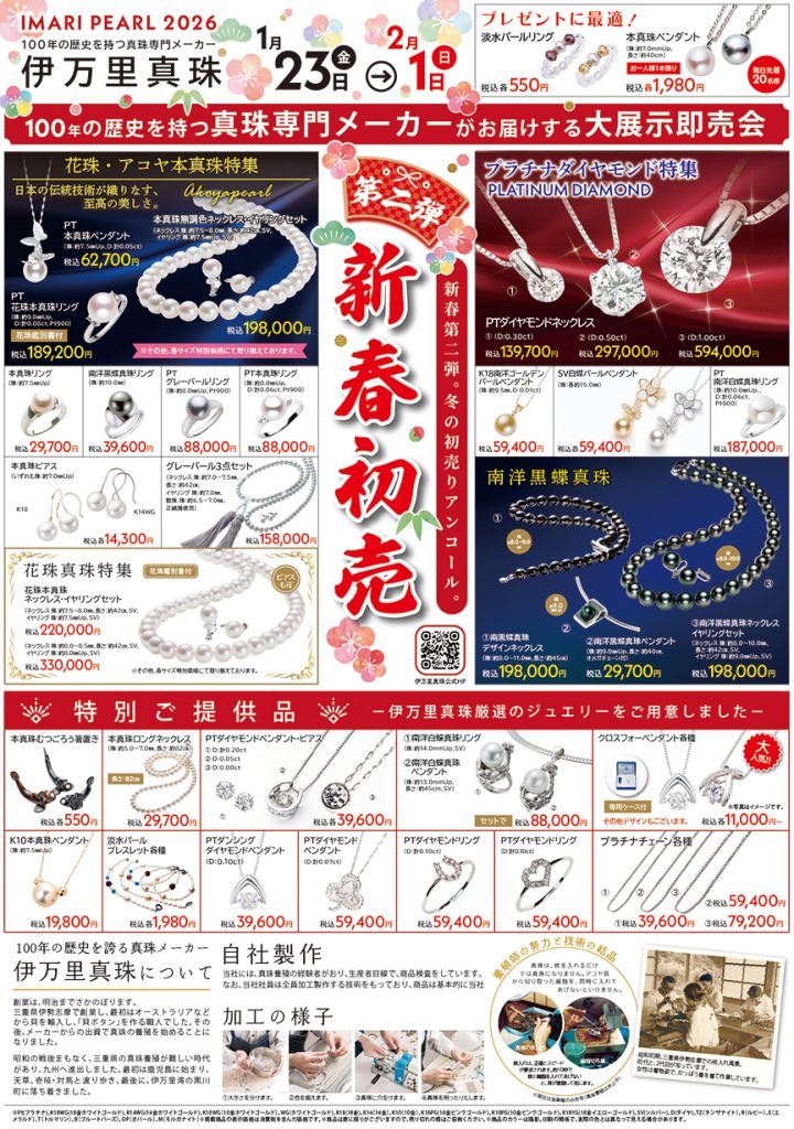 1月23日(金)から2月1日(日)まで、伊万里真珠本店にてパール&ジュエリーフェアを開催致します。