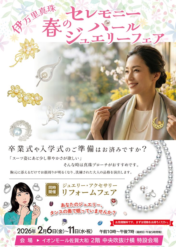 2月6日(金)~2月11日(水・祝)まで、イオンモール佐賀大和店 2階 中央吹抜け横 特設会場にてパールフェアを開催致します。