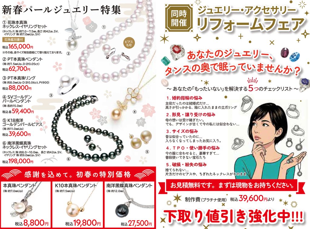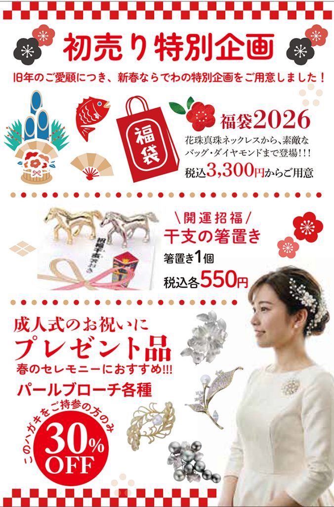 新春限定福袋をはじめ、素敵なアクセサリーを多数取り揃えて皆様のご来場を心よりお待ち申し上げております。